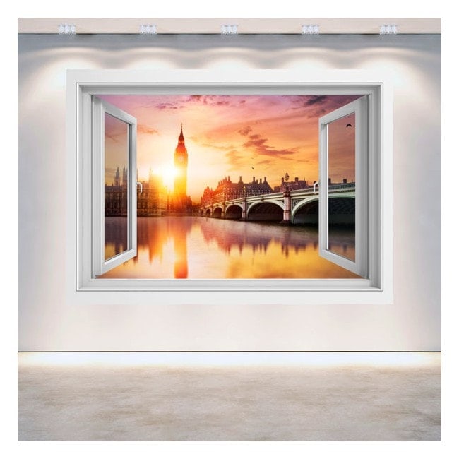 Looking for photos of Big Ben Vinyl Windows?. In Vinyl House® We offer you this spectacular "windows 3d Big Ben London sunset"with which you can decorate walls, decorate rooms, decorating bedrooms, decorate shops, decorate kitchens, decorate shops, decorating bathrooms, etc... quick, easy and very economical way. In contrast to other manufacturers or brands, in Vinyl House® all our Vinyl windows, 3d vinyl, 3d window, Wall vinyl, wall stickers o wall stickers are manufactured with high quality materials, thus guaranteeing you a durable product and the best price in the market.