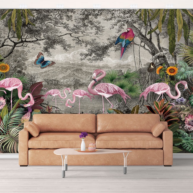 Are you looking for wallpapers or wall murals of tropical jungle, flamingos and birds? In Vinilos Casa ® you can buy wallpaper or wall mural of a tropical jungle, flamingos and birds, ideal for decorating walls, decorating living rooms, decorating bedrooms quickly, easily and very cheaply. All our wall murals or wallpapers are made with High Quality materials and in some cases they are sent in several sheets for easy placement. Unlike other manufacturers or brands, at Vinilos Casa ® all of our photomurals, photomurals, adhesive photomurals or vinyl photomurals are made with top quality materials, thus guaranteeing you a durable product at the best market price. The photomurals are sent in several sheets that must be joined in the place where they are going to be placed.
