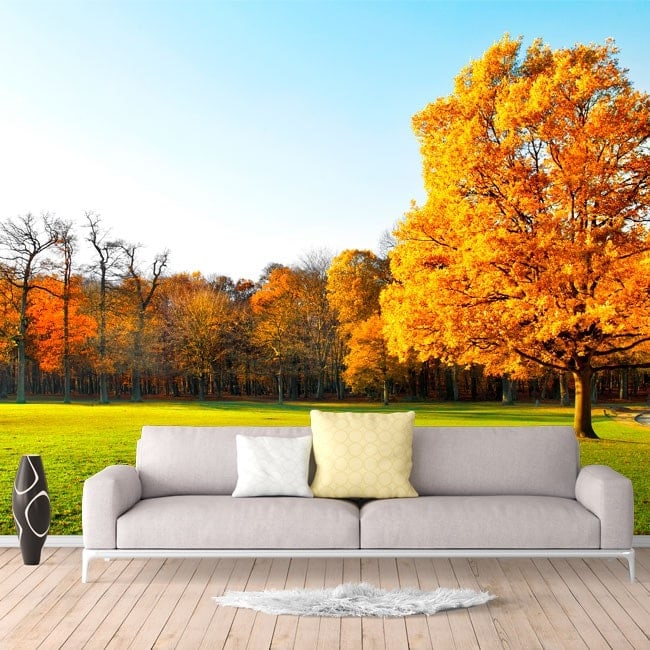 Give a touch of shocking nature to your décor?. In Vinyl House® We offer you this spectacular "Fotomural trees in autumn"with which you can decorate walls, decorate rooms, decorating bedrooms, decorate kitchens, decorating bathrooms, decorate shops, decorate office, decorate shops, etc... quick, easy and very economical way. In contrast to other manufacturers or brands, in Vinyl House® all of our photo wall murals, photo wall murals wall, adhesive photo wall murals o Vinyl wall photos are manufactured with high quality materials, thus guaranteeing you a durable product and the best price in the market. The photo wall murals they can be sent (depending on size) in several sheets that must be United in the place that will be placed.