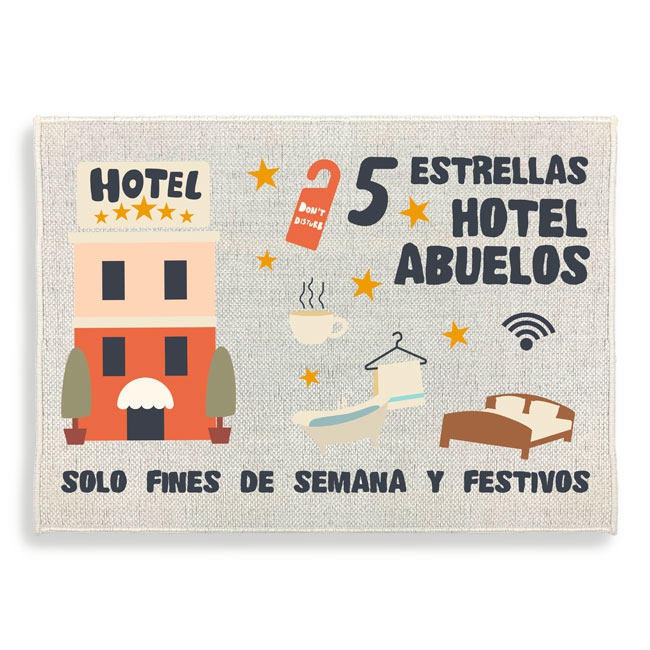 Are you looking for rugs or doormats with phrases for your decoration ?. At Vinilos Casa ® you can buy Carpet or doormat grandparents hotel, ideal to give a touch of originality to your decoration. Unlike other manufacturers or brands, at Vinilos Casa ® all our printed rugs or sublimation rugs are made with high-quality materials, thus guaranteeing you a long-lasting product at the best price on the market.