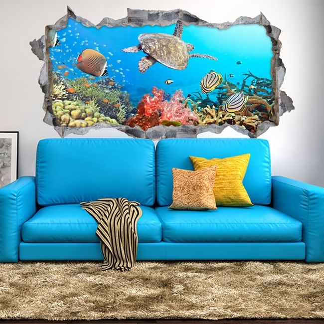 Do you want to add a marine touch to your decoration ?. In Vinilos Casa ® we propose this spectacular Vinyl 3D fish and turtle in the sea, with which you can decorate walls, decorate living rooms, decorate bedrooms quickly, easily and very economically. Unlike other manufacturers or brands, in Vinilos Casa ® all our broken wall vinyl, hole wall vinyl, 3d vinyl, 3d stickers, wall decals, wall stickers or wall stickers are manufactured with high quality materials, thus guaranteeing you a durable product and the best market price.