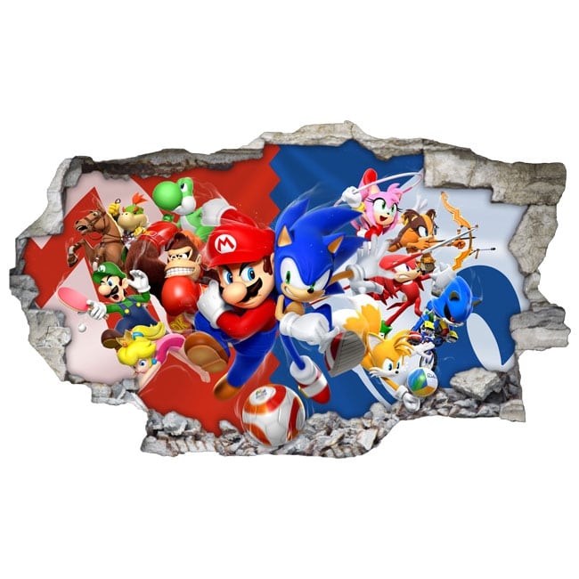 Are you looking for 3D decorative vinyl with Mario Bros and Sonic in the Olympic games ?. In Vinilos Casa ® you can buy at the best price Vinyl 3D video game Mario Bros and Sonic olympic games, ideal to decorate walls, decorate youth and children's rooms, decorate bedrooms quickly, easily and very economically. Unlike other manufacturers or brands, in Vinilos Casa ® all our broken wall vinyl, hole wall vinyl, 3d vinyl, 3d stickers, wall decals, wall stickers or wall stickers are manufactured with high quality materials, thus guaranteeing you a durable product and the best market price.