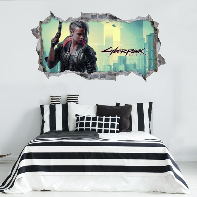 Are you looking for 3D decorative vinyls of the CyberPunk video game ?. In Vinilos Casa ® you can buy at the best price Vinyl stickers 3D video game cyberpunk 2077, ideal for decorating walls, decorating youth rooms, decorating bedrooms quickly, easily and very economically. Unlike other manufacturers or brands, at Vinilos Casa ® all our broken wall stickers, wall hole stickers, 3d stickers, 3d stickers, wall stickers, wall stickers or wall stickers are manufactured with high quality materials, thus guaranteeing you a durable product and at the best price on the market.